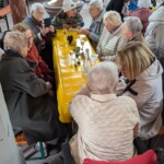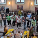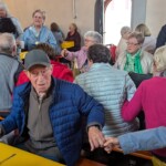 In diesem Jahr gab es aber eine Neuerung, die eigentlich nur ein Zugeständnis an das schlechte Wetter sein sollte: Das Kerbmontags-Café fand in der Kirche statt. Schon nach dem Grenzgang am Sonntag hatten die ersten BesucherInnen die bereitgestellten Bänke entdeckt, und am Montag fand sich dann ein großes, begeistertes Kerb-Volk ein. Es wurde gesungen, getanzt und sogar die Kerwe-Redd konnte von der Kanzel herab gehört werden.